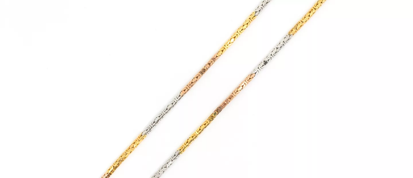 585 Gelb-, Weiß- und Rotgold, punziert, Länge 61,5 cm, Gewicht ca. 54,7 g