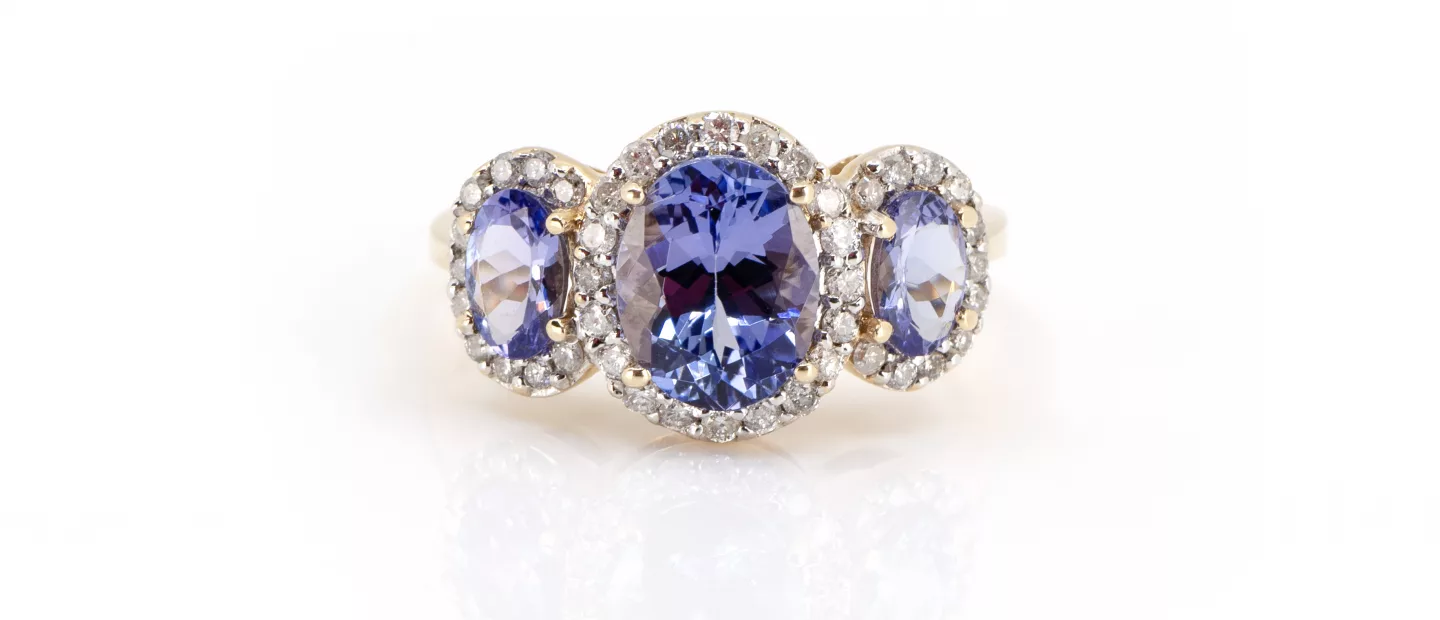 585 Gelbgold, punziert, 42 Diamanten im Brillantschliff, gesamt ca. 0,42 ct, I-J, pi, 3 oval facettierte Tansanite, gesamt ca. 3,00 ct, RW...