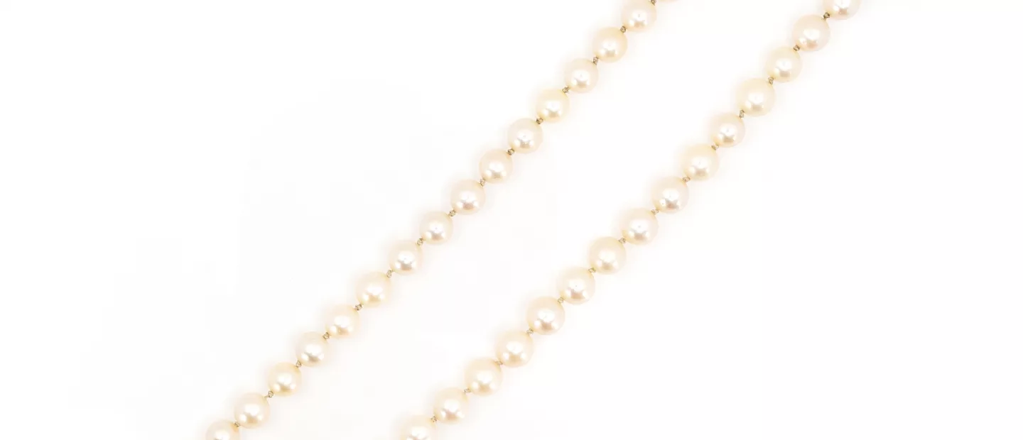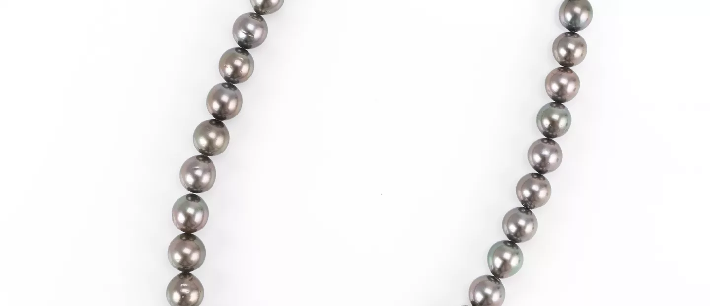 Verschluss 750 Weißgold, punziert, 39 Perlen, Ø 10-12,3 mm, Länge 48 cm, Gewicht ca. 76,6 g, Kopie der Rechnung anbei