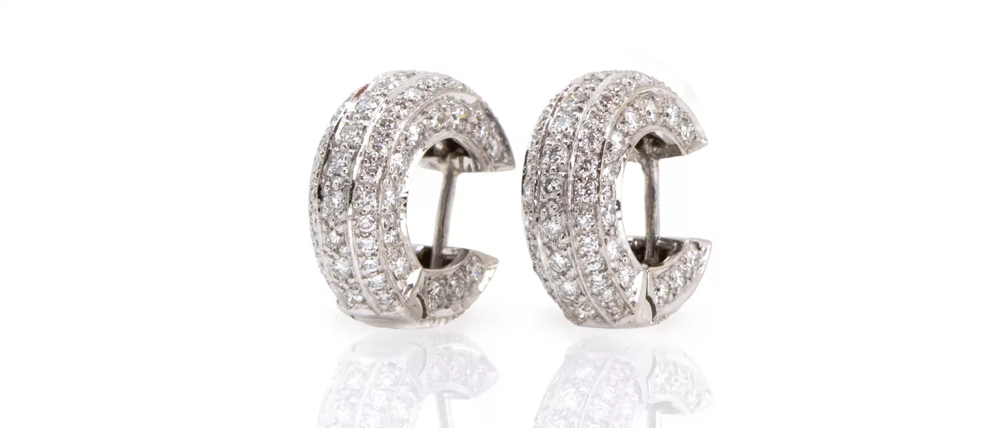 750 Weißgold, punziert, Diamanten im Brillantschliff, pavé gefasst, gesamt ca. 1,34 ct, H, vs, Ø 1,5 cm, Gesamtgewicht ca. 7,4 g