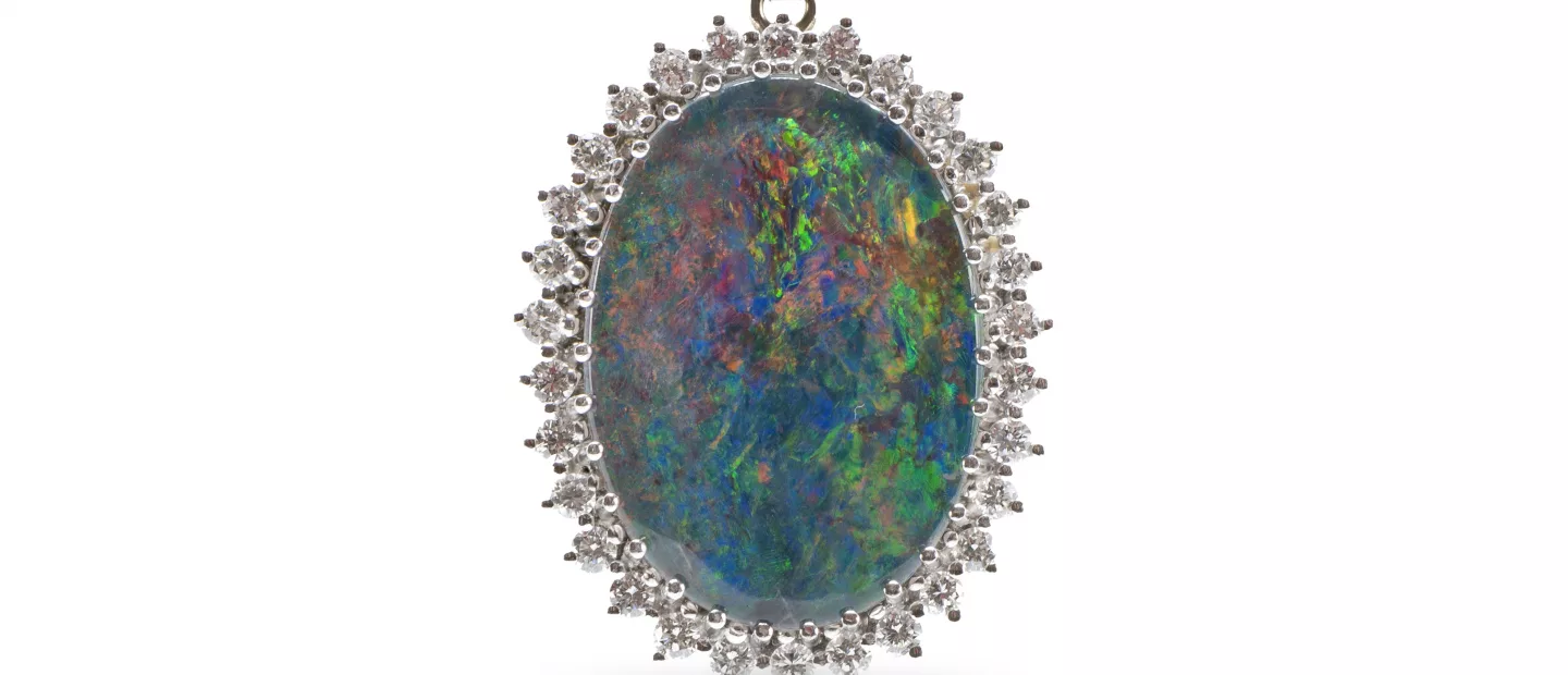 585 Weißgold, punziert, 30 Diamanten im Brillantschliff, gesamt ca. 0,90 ct, H, vs-si, Opal-Triplette 25 x 18 x 4,6 mm, Gesamtlänge...
