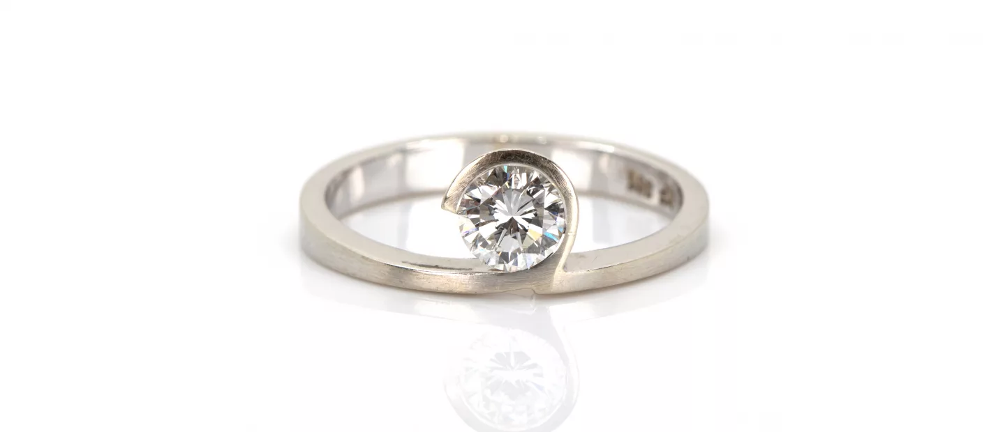 585 Weißgold, punziert, Diamant im Brillantschliff, ca. 0,52 ct, H, vvs-vs, RW 56, Gewicht ca. 3,3 g
