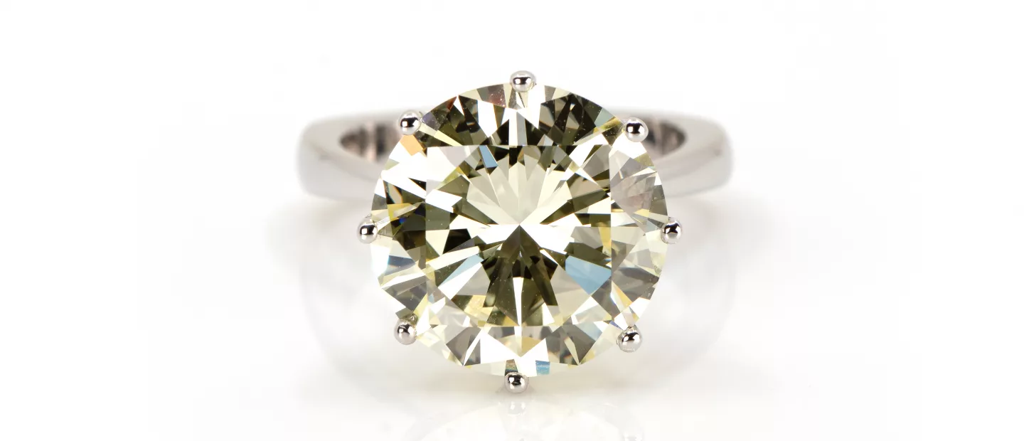 750 Weißgold, punziert, Goldschmiedepunze, Diamant im Brillantschliff, 8,99 ct, vvs1, S-Z (light yellow), Proportionen gut, Symmetrie sehr...