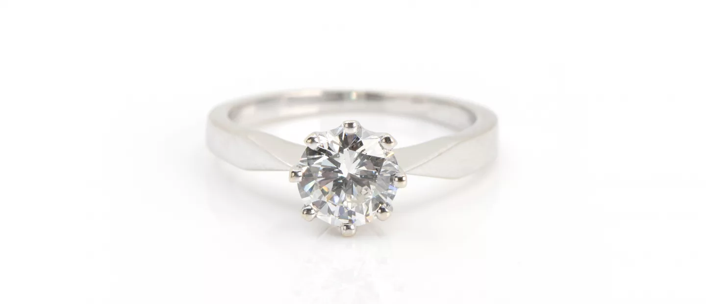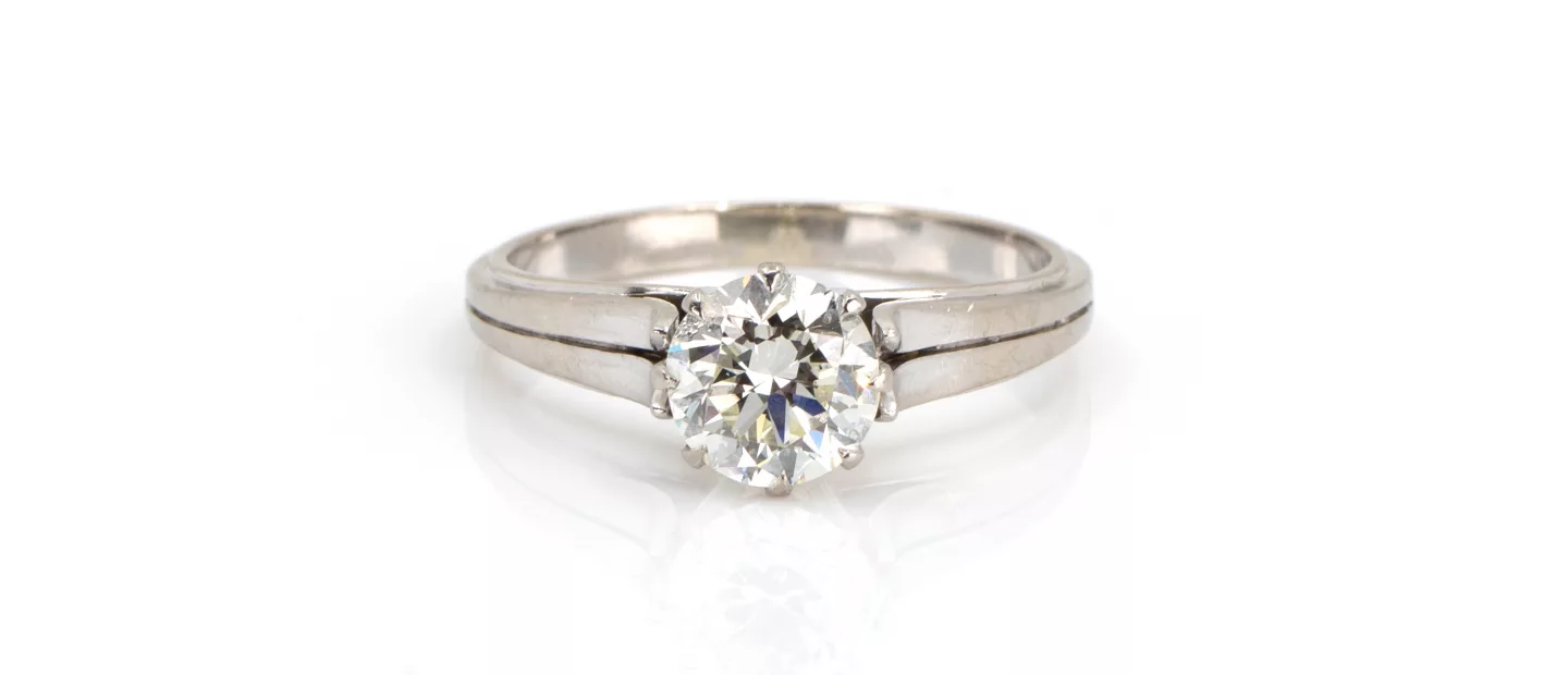 585 Weißgold, punziert, Diamant im Brillantschliff, ca. 1,25 ct, H, si, RW 56, Gewicht ca. 3,8 g