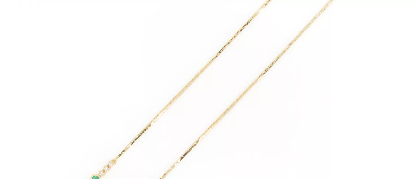 750 Gelbgold, punziert, 42 Diamanten im Brillantschliff, gesamt ca. 1,45 ct, 5 Smaragde im Rundschliff und 1 Smaragd im Tropfenschliff,...