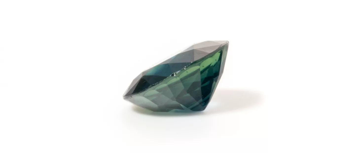 Unbehandelter, zweifarbiger Saphir: 2,475 ct, 8,36 - 8,44 mm x 4,44 mm, im Brillant-Schliff, bicolor dunkelblau/gelb, transparent mit...