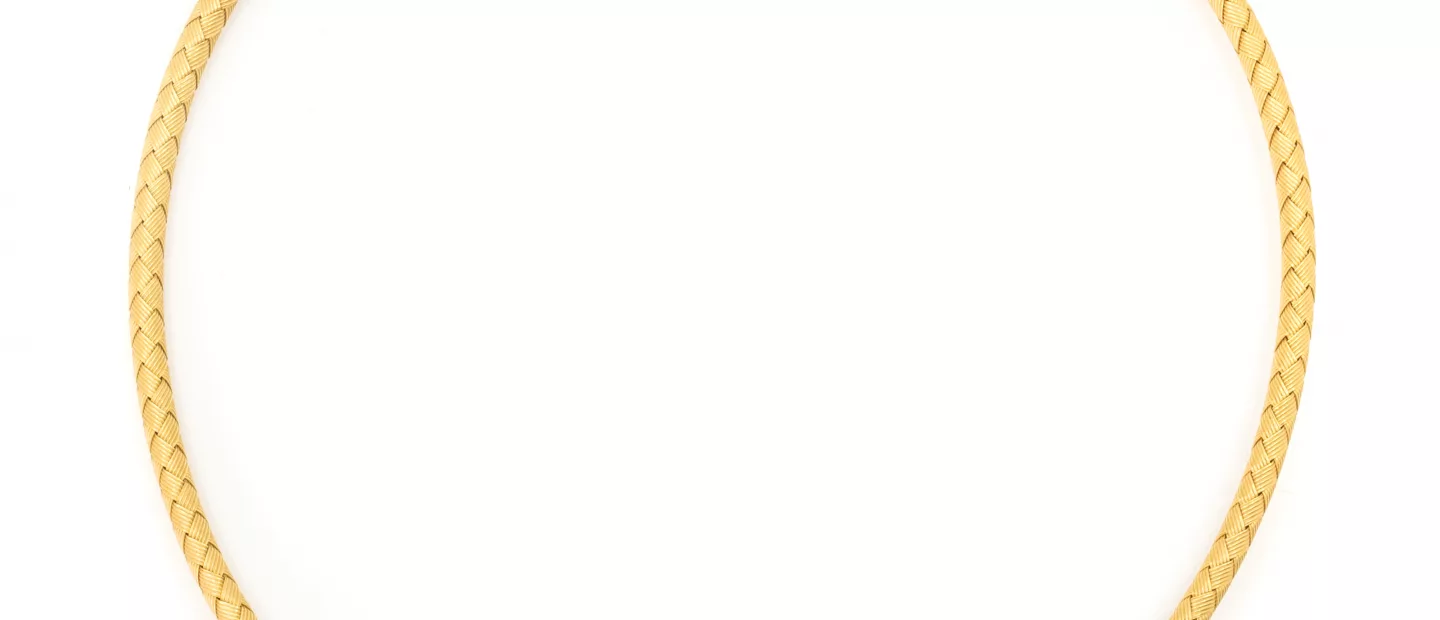 Geflochtenes Goldcollier: 750 Gelbgold, punziert, Länge ca. 41 cm, Gewicht ca.