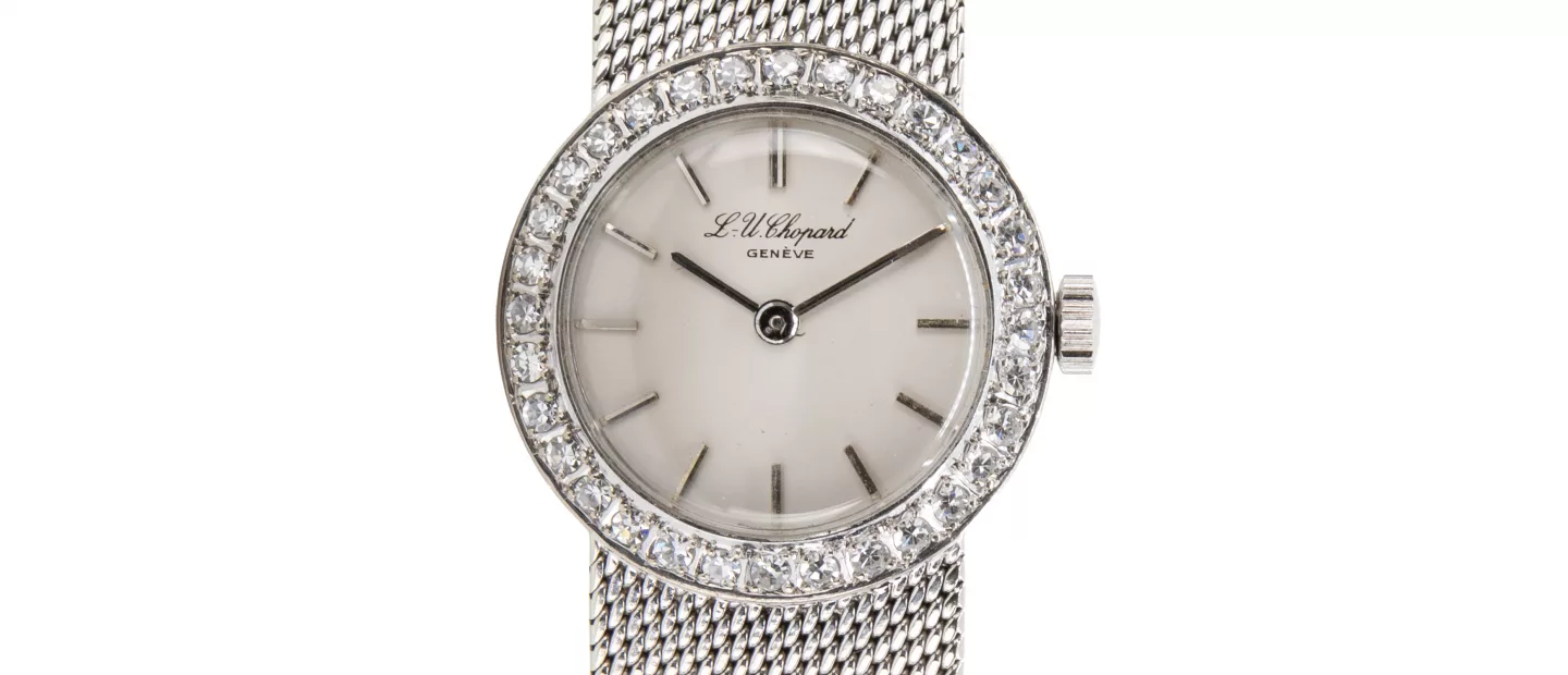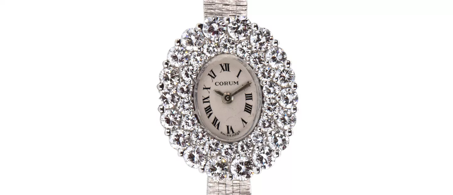 1970/1980er Jahre, Handaufzug, innen nummeriert 65050, Gehäuse 750 Weißgold, innen punziert, Lünette mit 32 Diamanten im Achtkantschliff,...