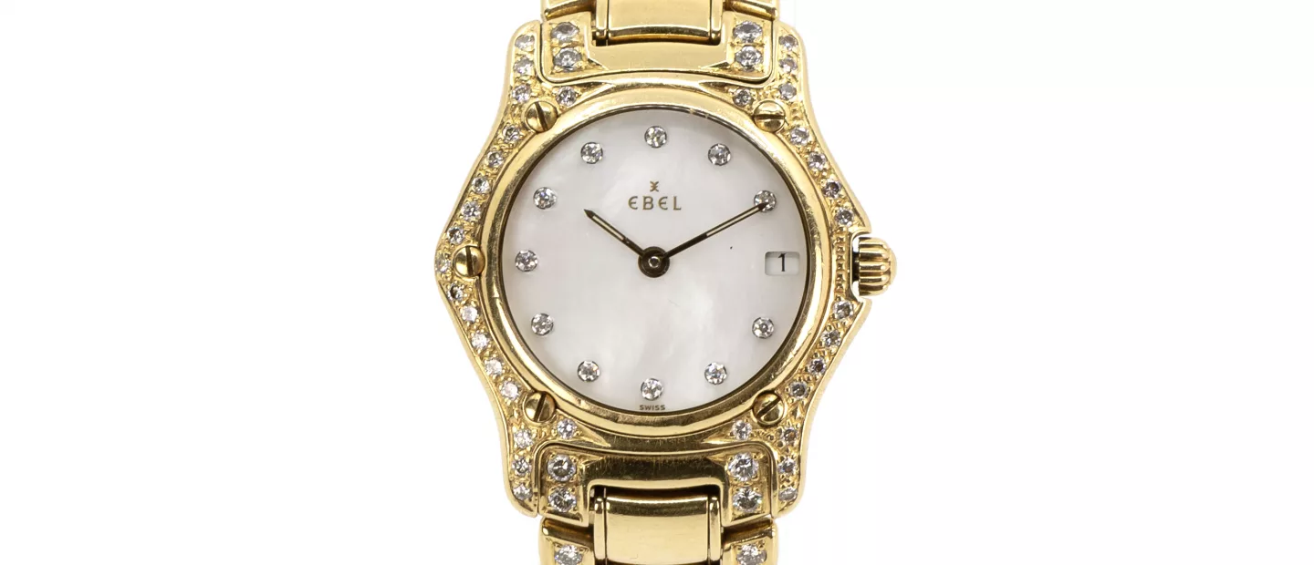 Quartz, Gehäuse-Nr. 72103400 888901 | Ref.-Nr. 1911, Gehäuse 750 Gelbgold, punziert, Perlmuttzifferblatt, Armband und Zifferblatt mit 105...