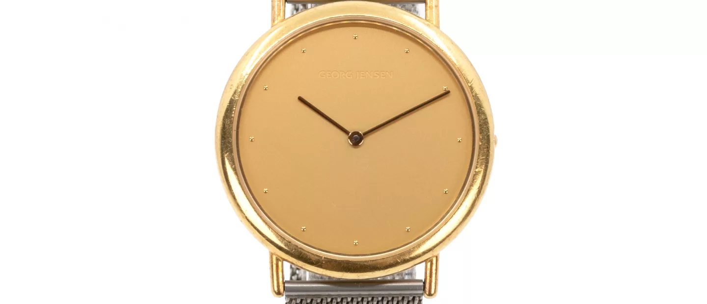 Thorup & Bonderup für Georg Jensen, Dänemark, Modell 1347, Quartz, Gehäuse-Nr. 31742, Gehäuse 750 Gelbgold, punziert, Durchmesser 33 mm,...