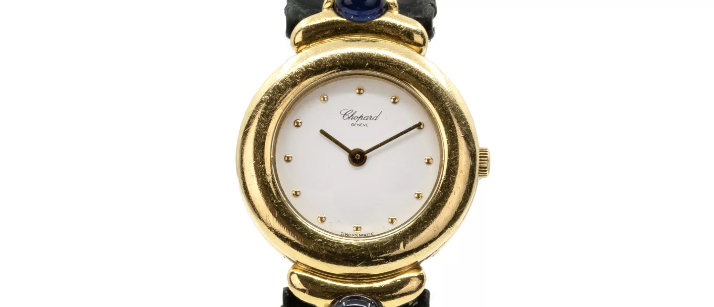 Quartz, Gehäuse-Nr. 13/5878-23 | Ref.-Nr. 445933 899, Gehäuse 750 Gelbgold, punziert, 2 Saphircabochons, Durchmesser 23 mm,...