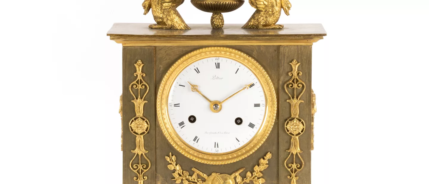 Peltier, Frankreich, um 1880-1890, rechteckiges Gehäuse auf gedrückten Kugelfüßen, Bronze, gegossen, feuervergoldet, Palmettenfries,...