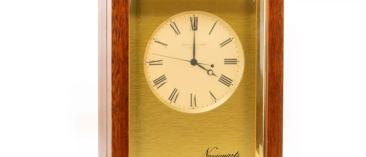 Schweiz 1970er Jahre, Modell E1200, Quarzwerk, Aluminium und Messing, vergoldet, Präsentationsbox mit Messingbeschlägen, verso auf...