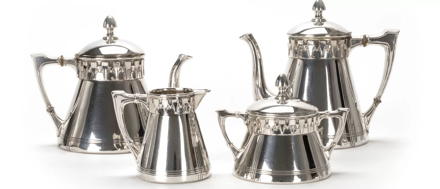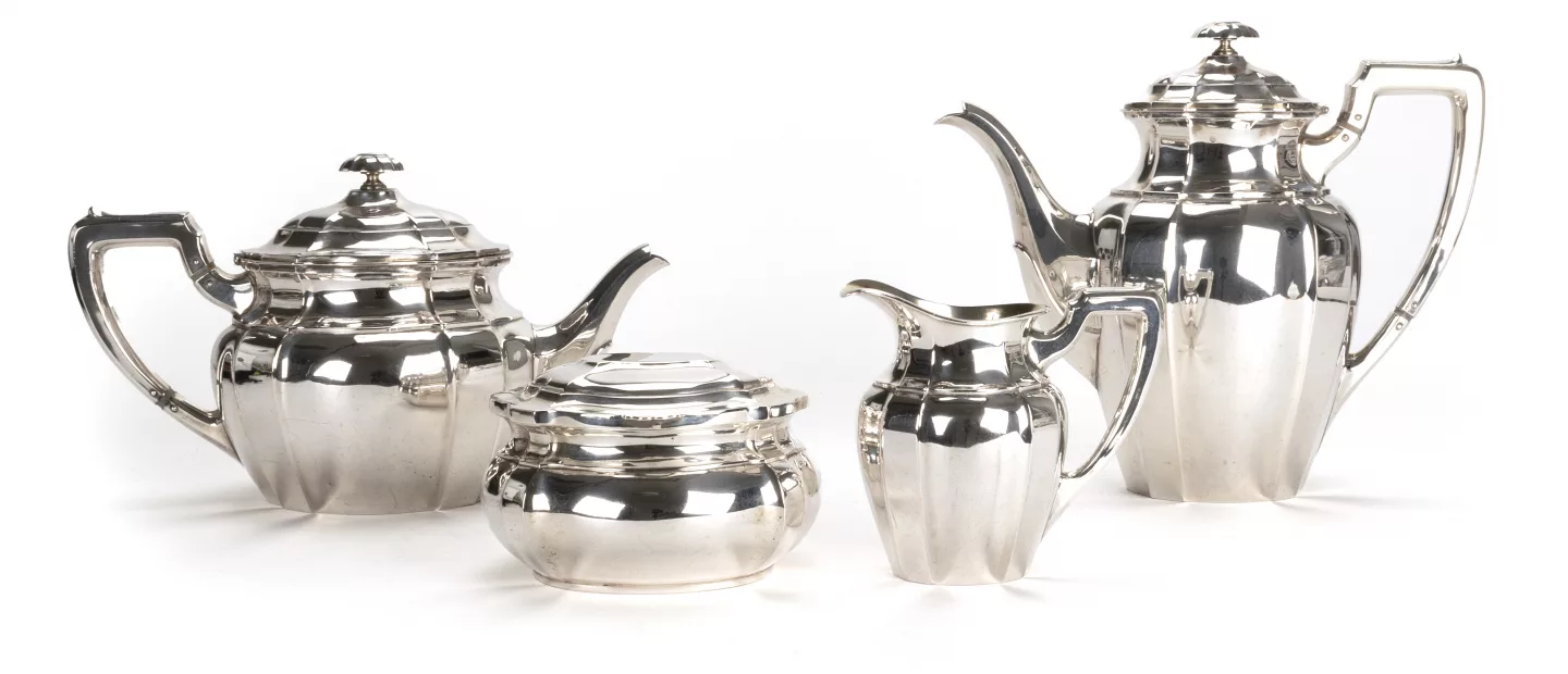 4-tlg., Koch und Bergfeld, Bremen, 800 Silber, punziert, Feingehalt, Halbmond und Krone, Modellnummern sowie Juwliersmarke Clemens Dahmen...