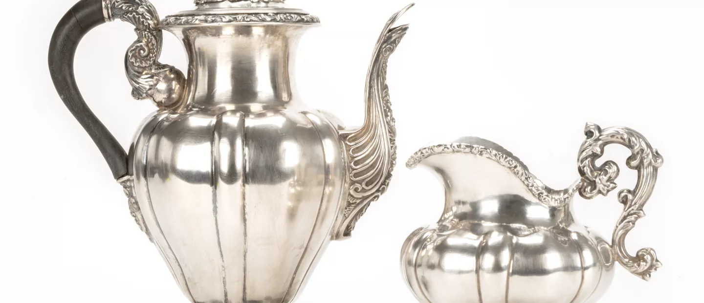 4-tlg., Milchkännchen Bruckmann & Söhne, Heilbronn, alle übrigen Teile ohne Manufakturmarke, um 1920, Kaffeekanne 800 Silber, punziert,...