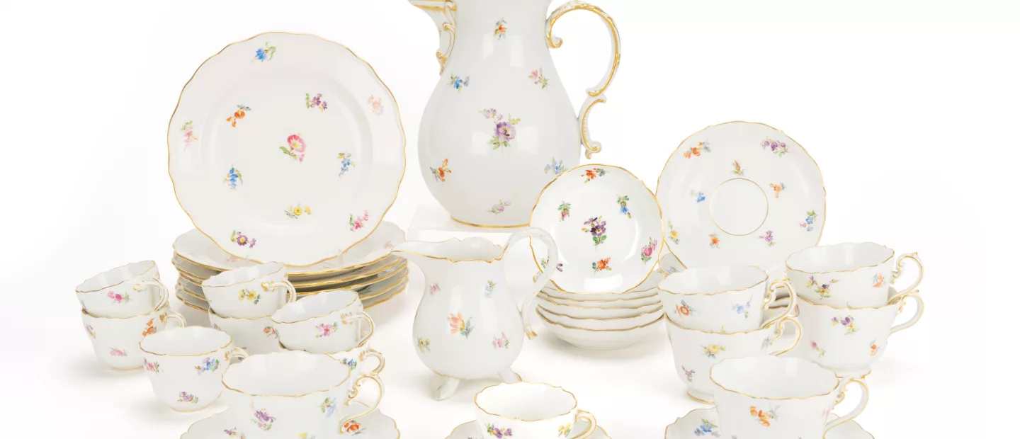 8-tlg., Meissen, 2001, Porzellan, weiß, polychrom bemalt und gold staffiert, Meissen Sonderedition für das KaDeWe in Berlin, 1...
