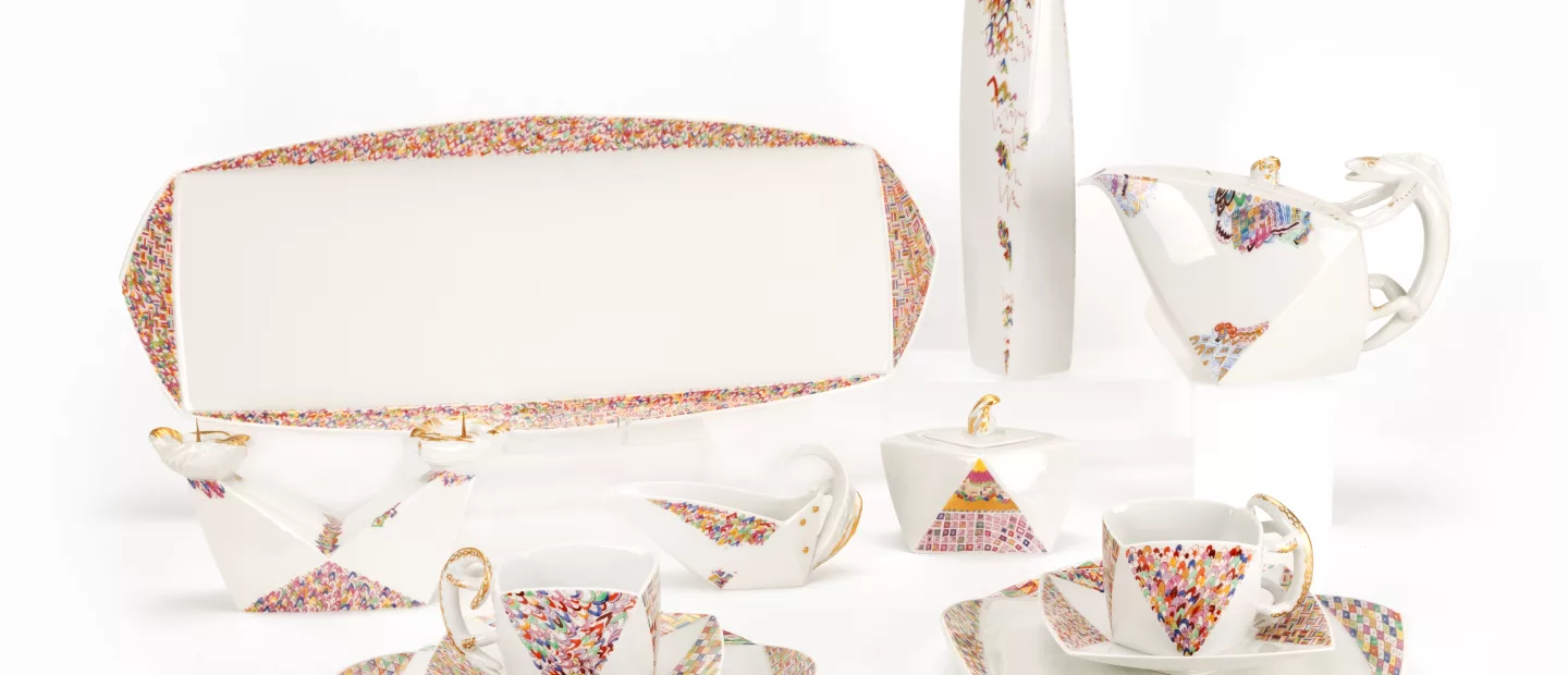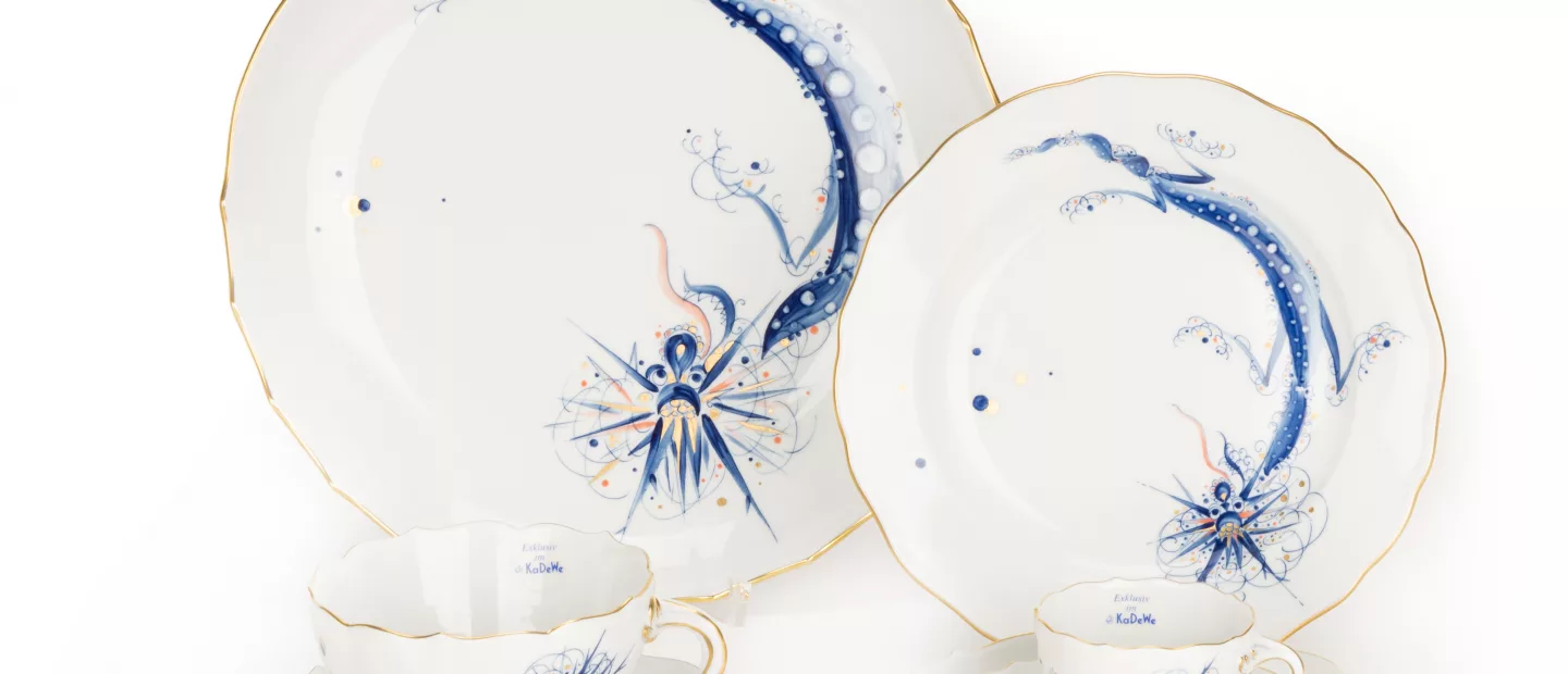 12-tlg., Meissen, Entwurf Sabine Wachs (1960) und Silvia Klöde (1956), 1990er Jahre, Porzellan, weiß, fantasievoll polychrom bemalt und...