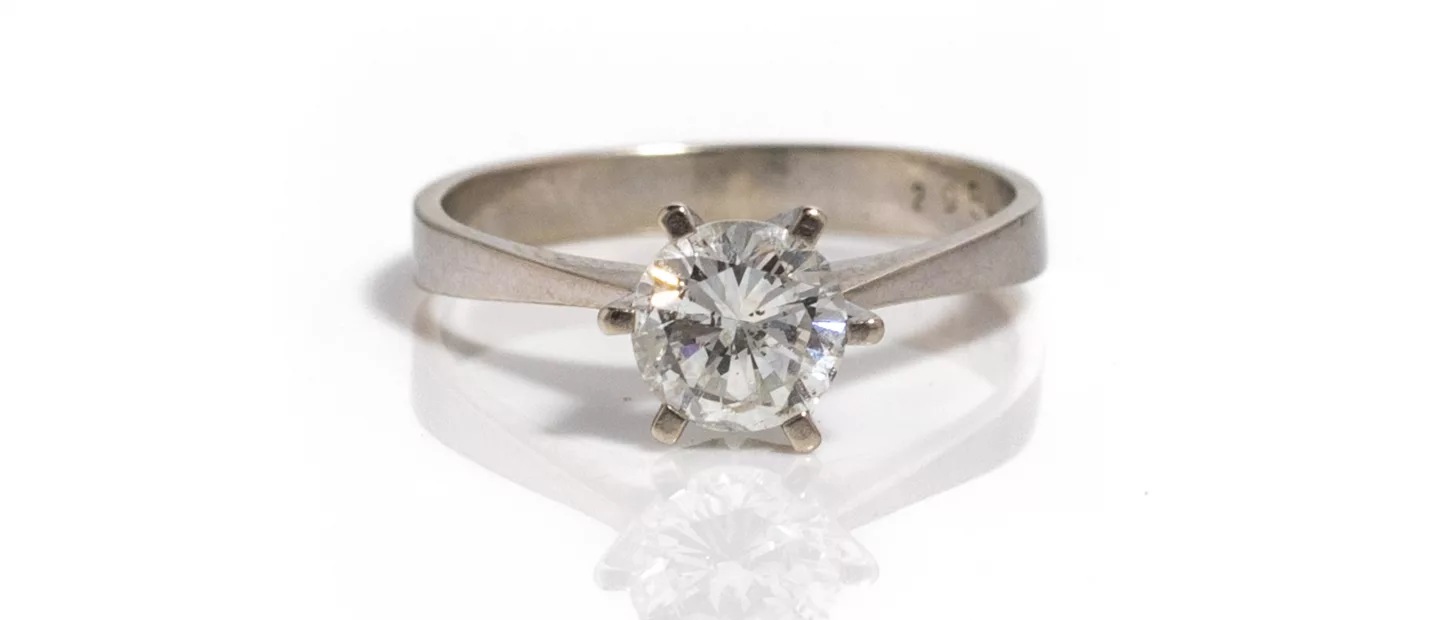 Solitär-Ring: 750 Weißgold, punziert, Diamant im Brillant-Schliff, ca. 1,13 ct, I, VVS2, Ringgröße 55, Gesamtgewicht ca. 4