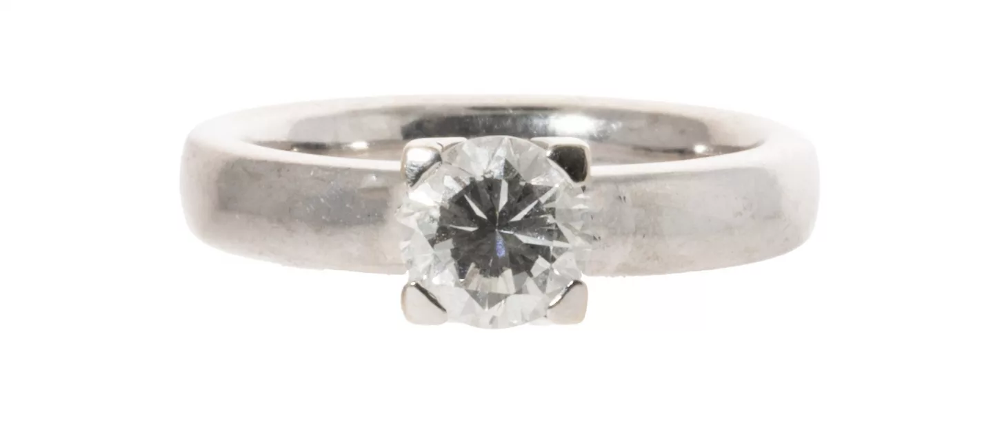 Solitärring: 750 Weißgold, punziert, Diamant im Brillant-Schliff, ca. 0,75 ct, H, VSI-SI, Ringgröße 53, Gesamtgewicht ca. 7