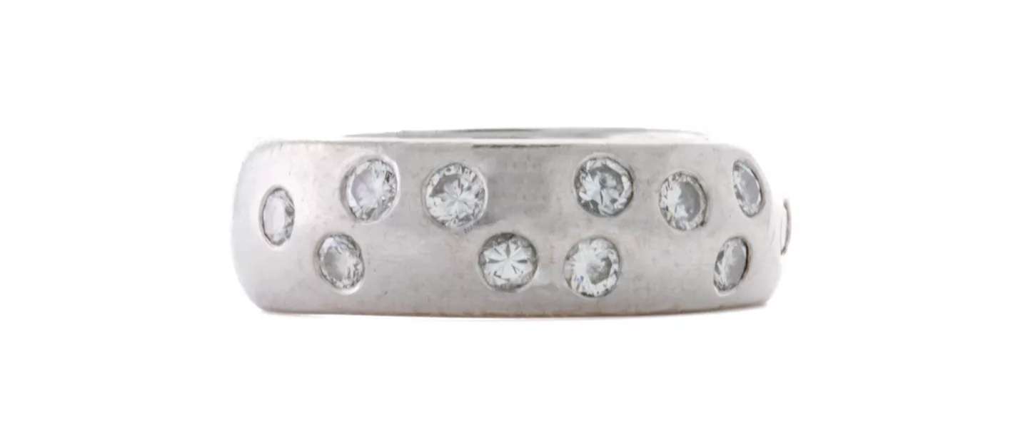 Diamantring: 750 Weißgold, punziert, 11 Diamanten im Brillant-Schliff, zus. ca. 0,75 ct, H, VSI, Ringgröße 54, Gesamtgewicht ca....