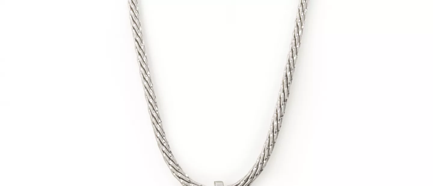 Wellendorff Collier 'Pures Glück': 750 Weißgold, punziert, Emaille 'Flieder/Trüffel', Diamanten im Brillantschliff ca. 0,25 ct,...