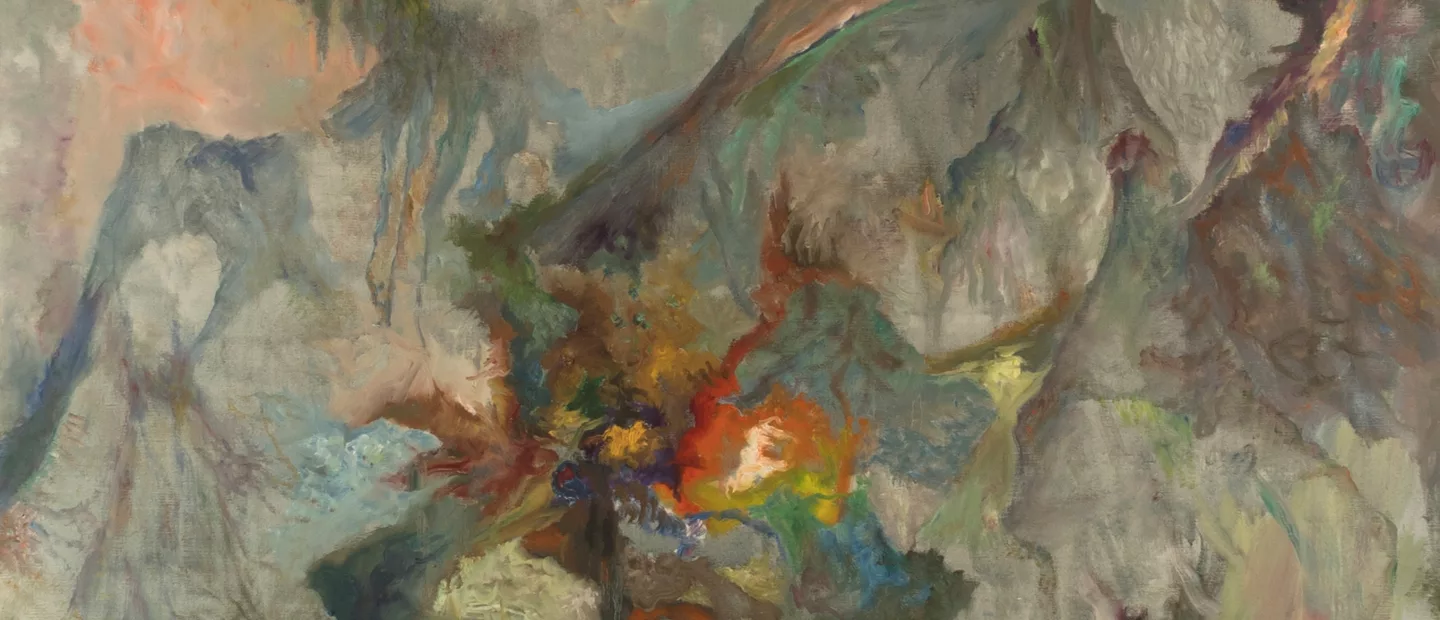 Fritz Wegeleben (1941 Deutschland) (F): 'Tanz des Vulkans oder die Hoffnung des Feuers', Mischtechnik auf Leinwand, 100 cm x 135 cm...