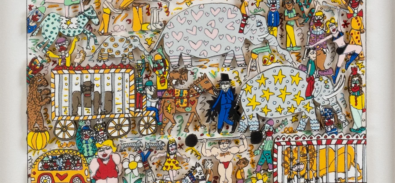 James Rizzi (1950 New York City - 2011 ebenda): 'Under the big top', Farbseriegrafie (3-D Druck) auf leichtem Karton, 31,5 cm x 23,5...