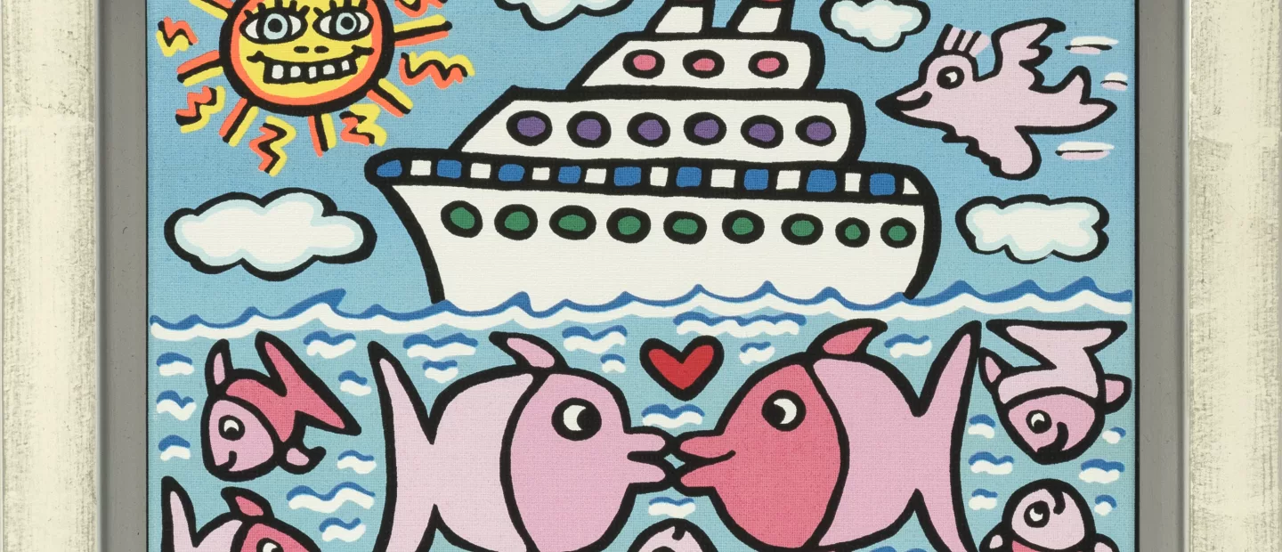 James Rizzi (1950 New York City - 2011 ebenda): The Kissing Cruise, Siebdruck auf Leinwand, 15 cm x 20 cm Leinwandmaß, signiert, verso...