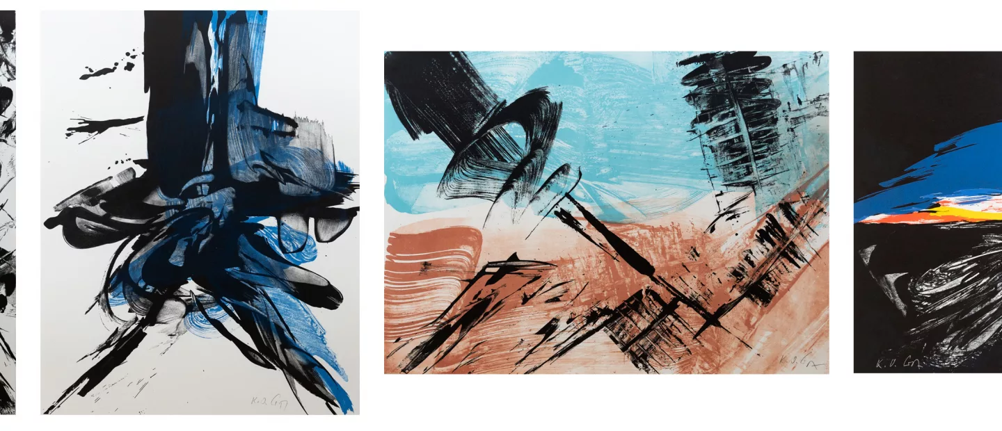 Karl Otto Götz (1914 Aachen - 2017 Wolfenacker) (F): vier Arbeiten aus der Mappe 'Don Quijote de la Mancha', 4-tlg., Farblithografie...