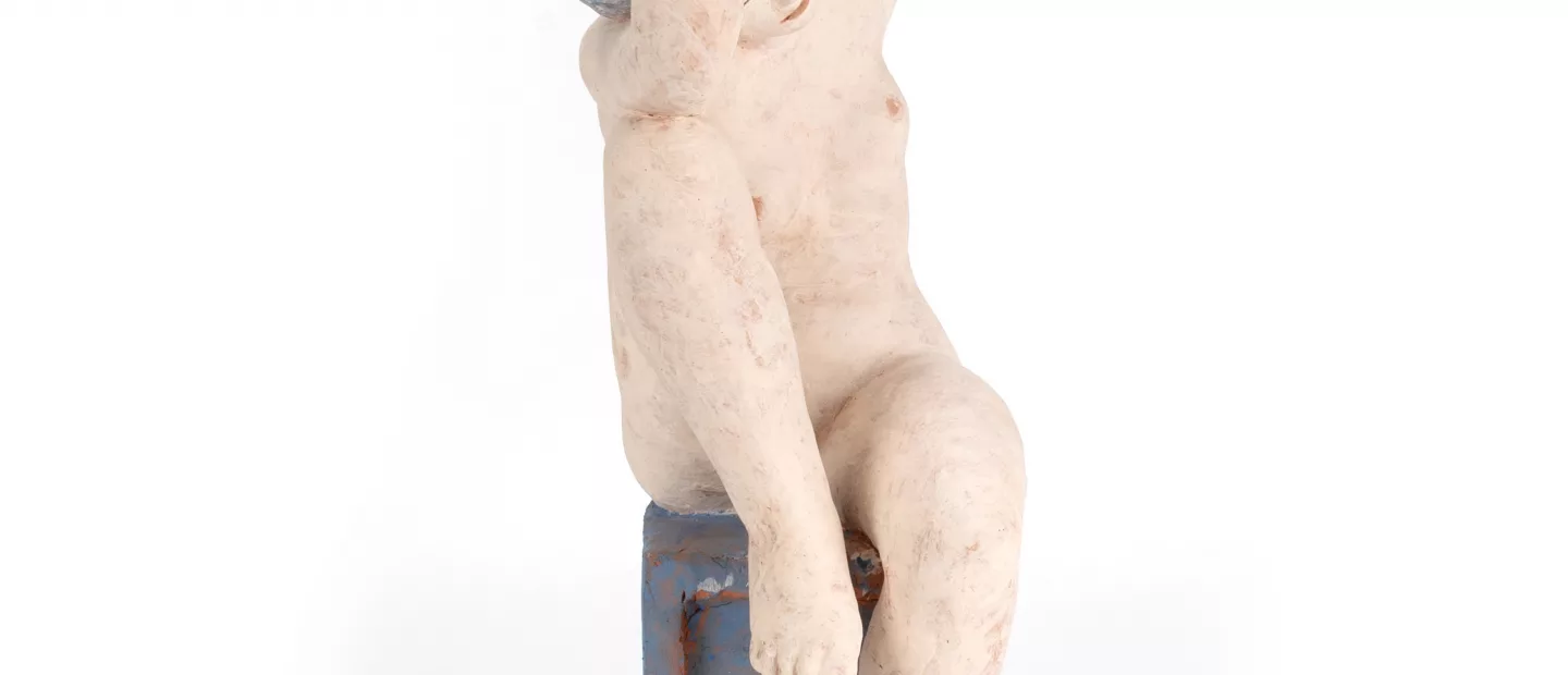 Harald Metzkes (1929 Bautzen) (F): Sitzender Akt, Ton, polychrom bemalt, Höhe 42 cm, verso mit Ritzsignatur und IV nummer