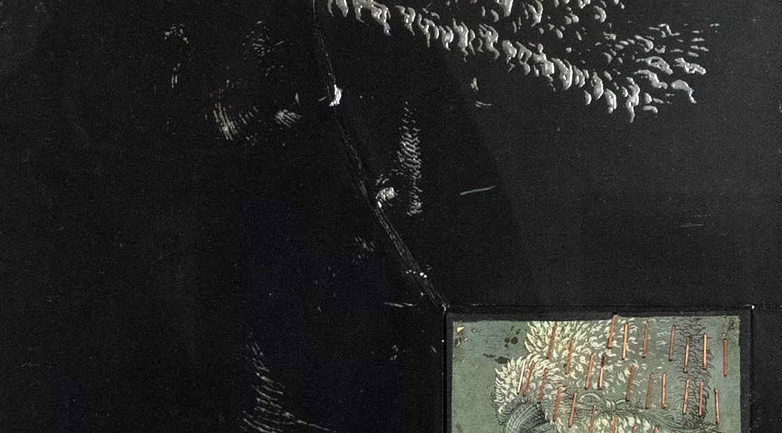 Adolf Luther (1912 Krefeld-Uerdingen - 1989 Krefeld) (F): Ohne Titel, Siebdruck auf Aluminiumfolie mit Postkarte nach Hans Baldung...