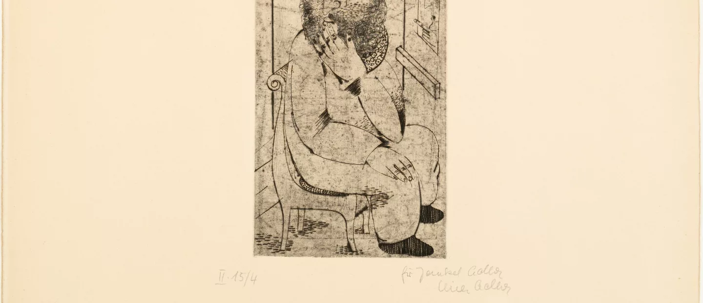 Jankel Adler (1895 Tuszyn - 1949 Aldbourne) (F): Sitzender, bärtiger Mann, Radierung auf festem Papier, 27 cm x 14 cm...
