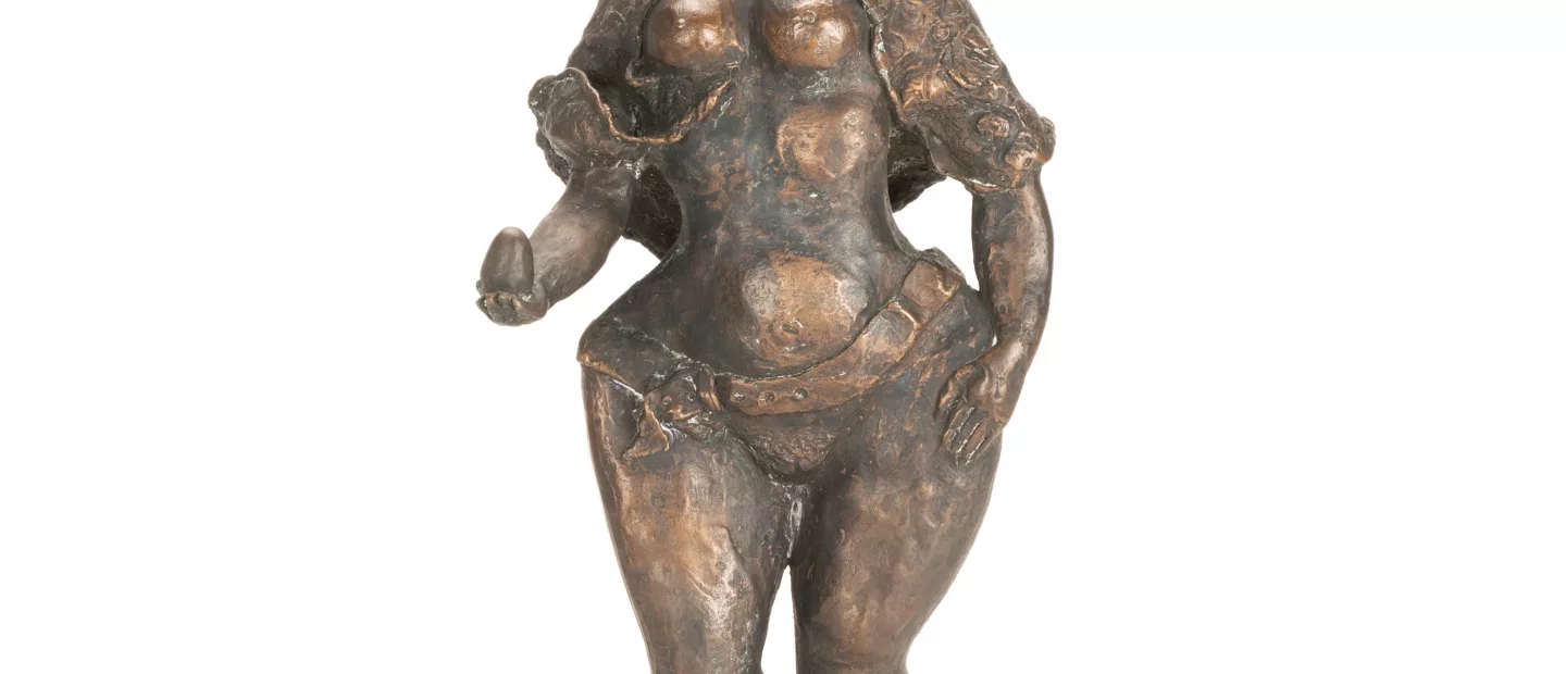 Bele Bachem (1916 Düsseldorf - 2005 München) (F): 'Ländliche mit Ei', Bronze, braun patiniert, 1972, Höhe 30 cm, im Guss...