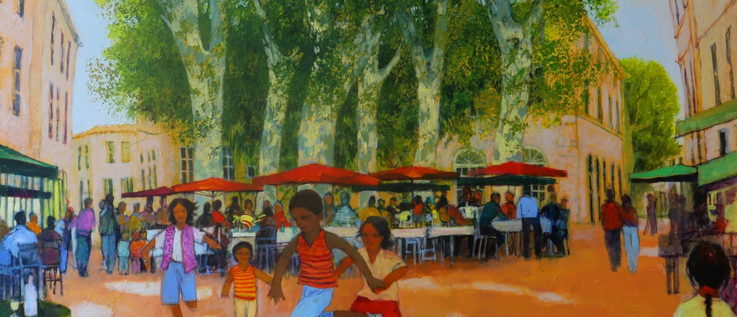 Uwe Herbst (1952 Köln): 'Kinderspiele', Öl auf Leinwand, 100 cm x 120 cm Leinwandmaß, monogrammiert, verso bezeichnet