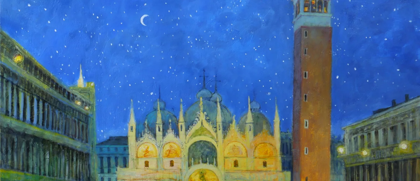 Uwe Herbst (1952 Köln): 'San Marco', Öl auf Leinwand, 100 cm x 100 cm Leinwandmaß, monogrammiert, verso bezeichnet