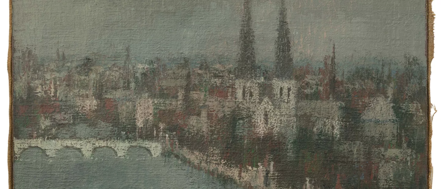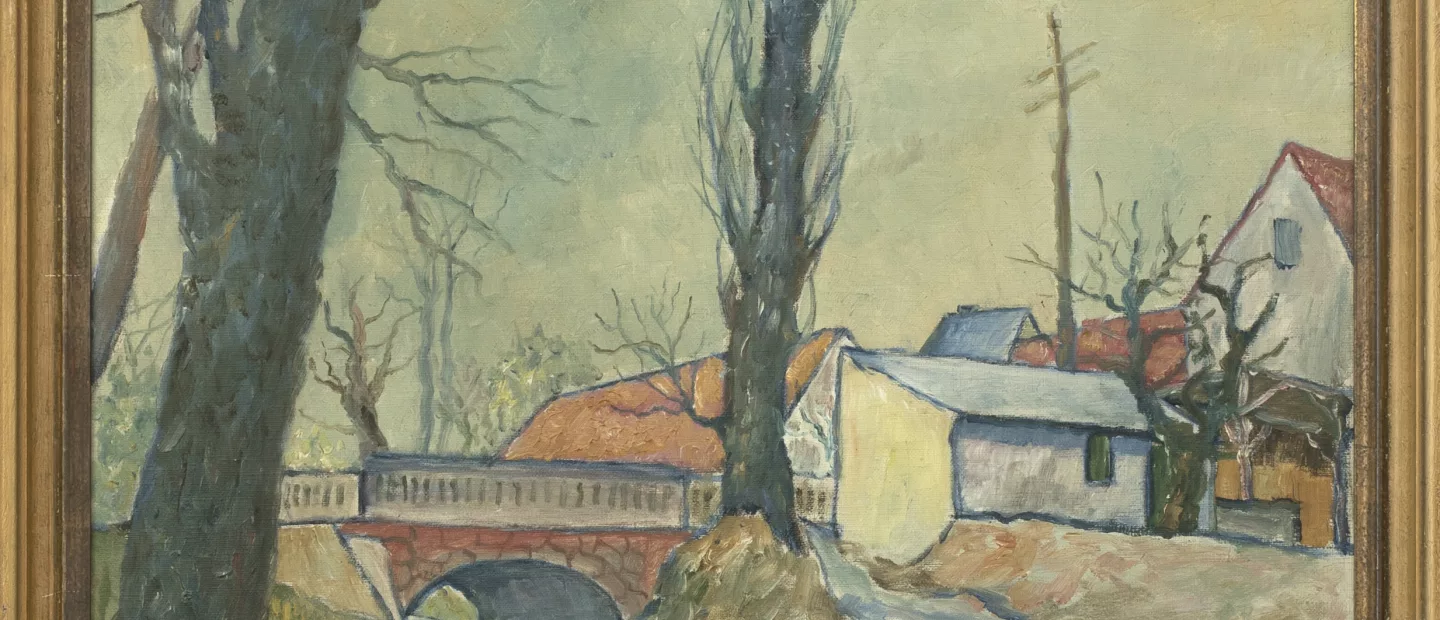 Josef Wedewer (1896 Lüdinghausen - 1979 ebenda): 'Am Fluß', Öl auf Leinwand, 50 cm x 70 cm Leinwandmaß, signiert, verso 1948...