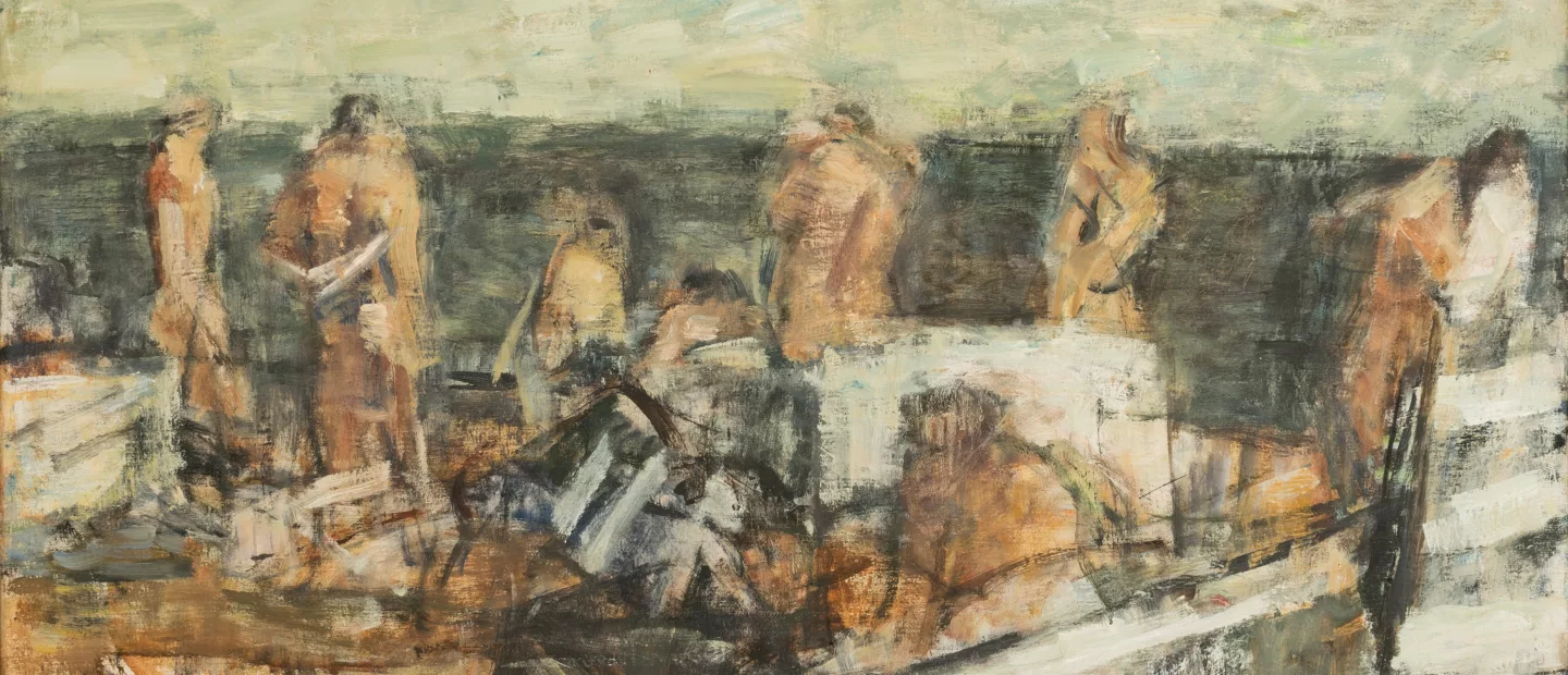 Manfred Böttcher (1933 Oberdorla - 2001 Berlin): 'Der Strand', Öl auf Leinwand, 72 cm x 110 cm Leinwandmaß, verso signiert, 80 -...