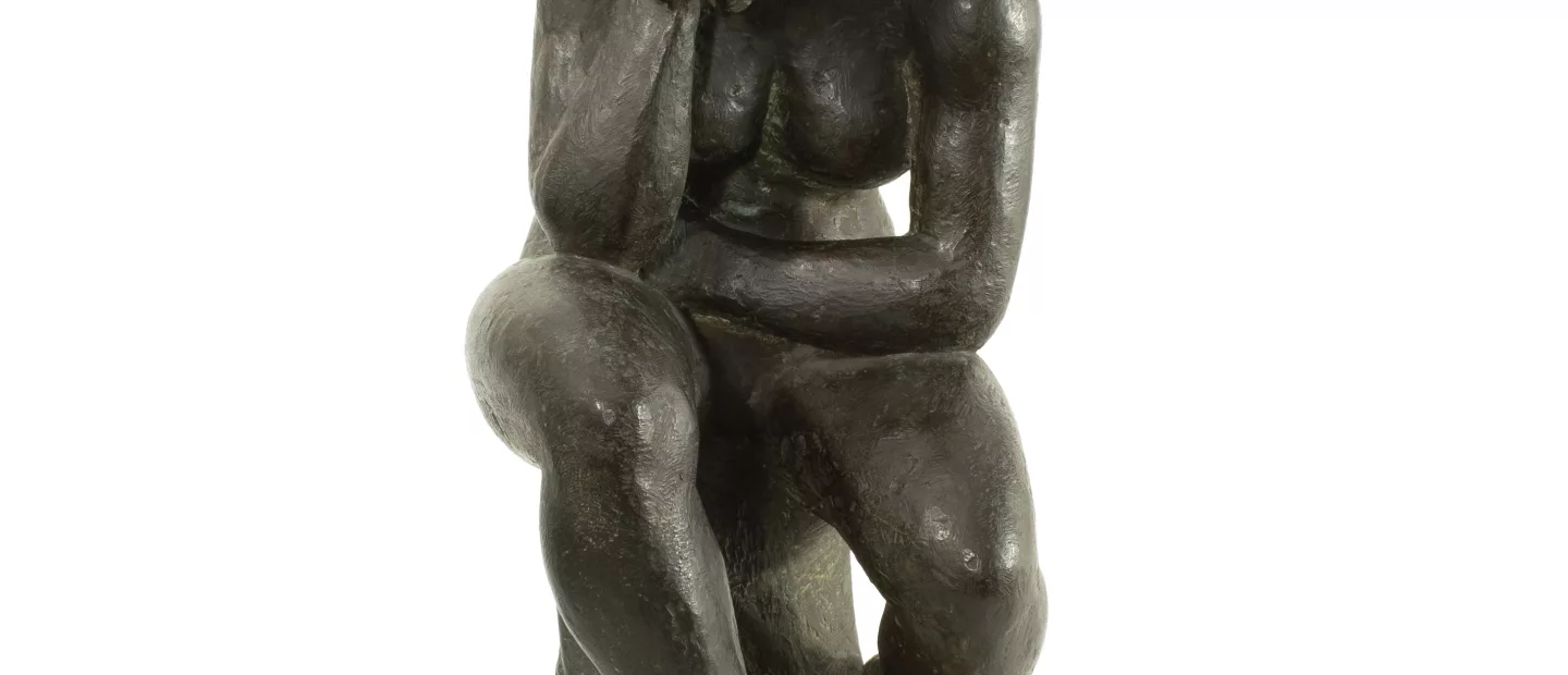 Manfred Welzel (1926 Berlin): Die Denkerin, Bronze dunkel patiniert, Höhe ca. 40 cm, im Guss monogrammiert, 74 datiert, Gießerstempel...