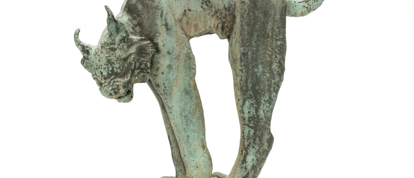 Jussi Mäntynen (1886 Helsinki - 1978 Turku): Luchs, Bronze, grün patiniert, ca. 47 x 45 x 14 cm Werkmaß, im Guss signiert, 1938...