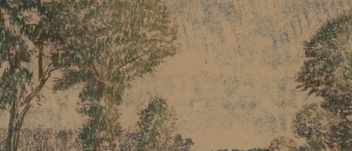 Max Clarenbach (1880 Neuss - 1952 Wittlaer): Niederrheinische Landschaft, Farbkreidezeichnung und Bleistift auf Papier, 44 cm x 32 cm...