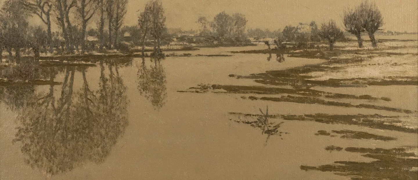 Max Clarenbach (1880 Neuss - 1952 Wittlaer): Winterliche Flusslandschaft, Öl auf Leinwand, 50 cm x 60 cm Leinwandmaß, signiert,...