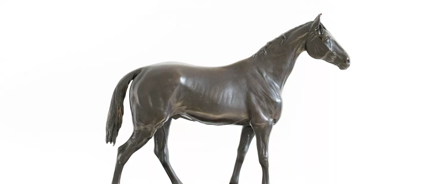 Hans Guradze (1861 Kotulin, Königreich Preußen - 1922): Porträt des Rennpferdes Gay Paris, Bronze, dunkel patiniert, 32,5 cm x 40...
