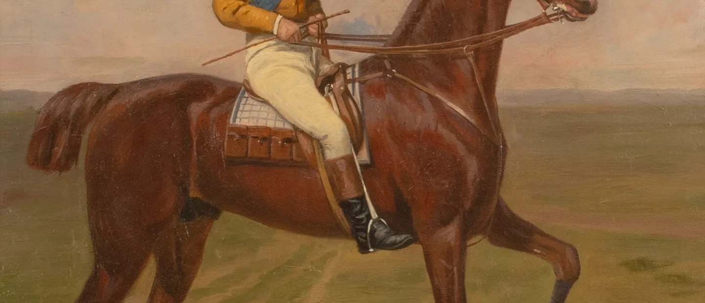 Karl Volkers (1868 Düsseldorf - 1944 Fischenich): Bildnis eines Jockeys auf seinem Pferd, Öl auf Leinwand, 66 cm x 55 cm...