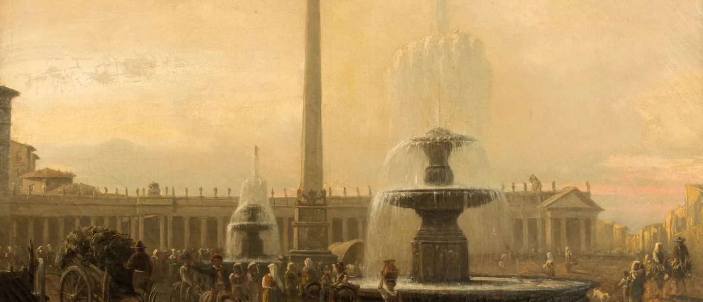 Albert Arnz (1832 Düsseldorf - 1914 ebenda): Belebter Petersplatz in Rom, Öl auf Leinwand, 64 cm x 93,5 cm Leinwandmaß, signiert, 72...