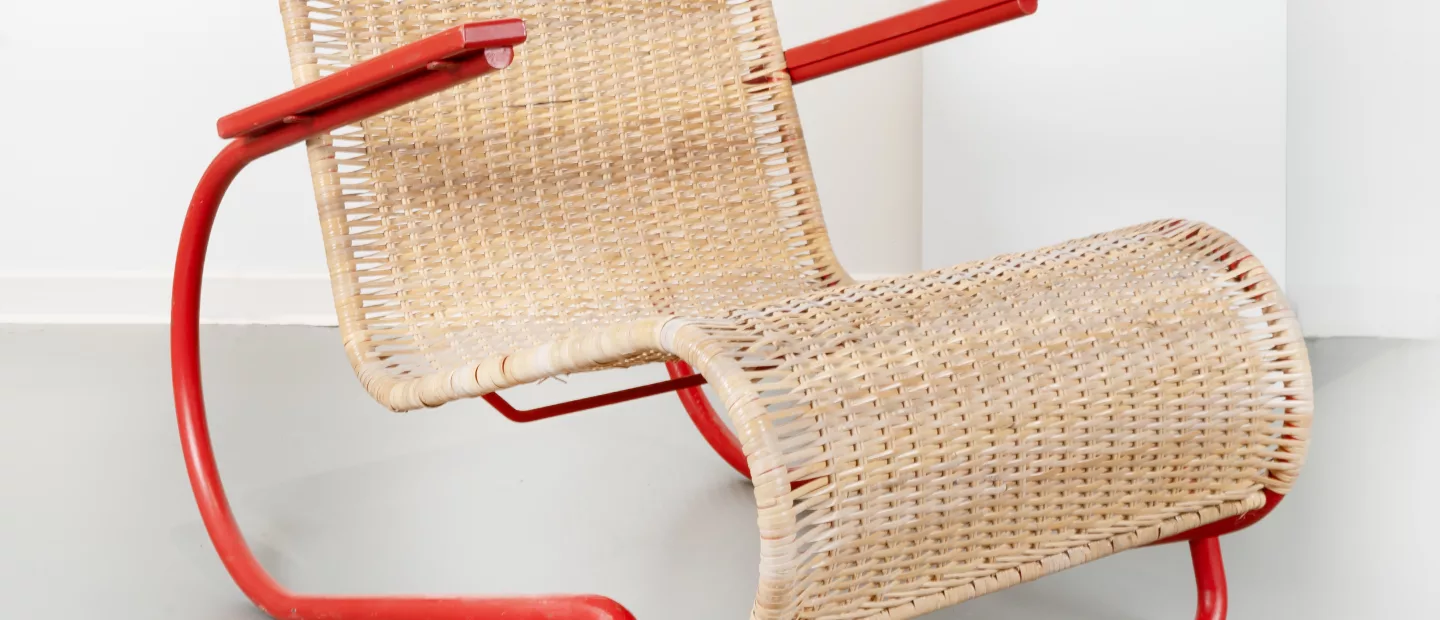 Sessel Erich Dieckmann (1896 - 1944), 1930: Rot lackierter Stahl, Geflecht, lackiertes Holz, Berliner Metallgewerbe Josef Müller, 63 x...
