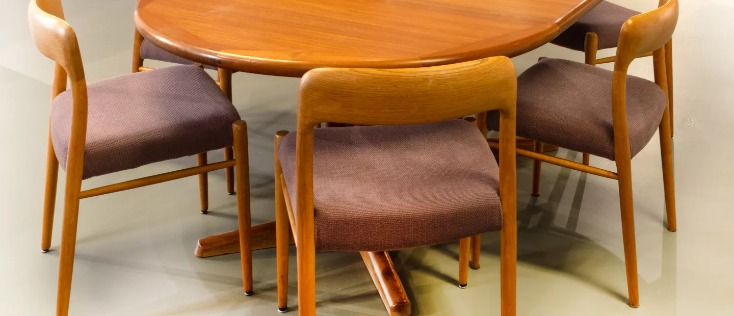 Set Mid-Century Stühle 'Model 75', Entwurf von Niels O. Møller, und Dyrlund ausziehbarer Esstisch: 7-tlg., Stühle von J.L....