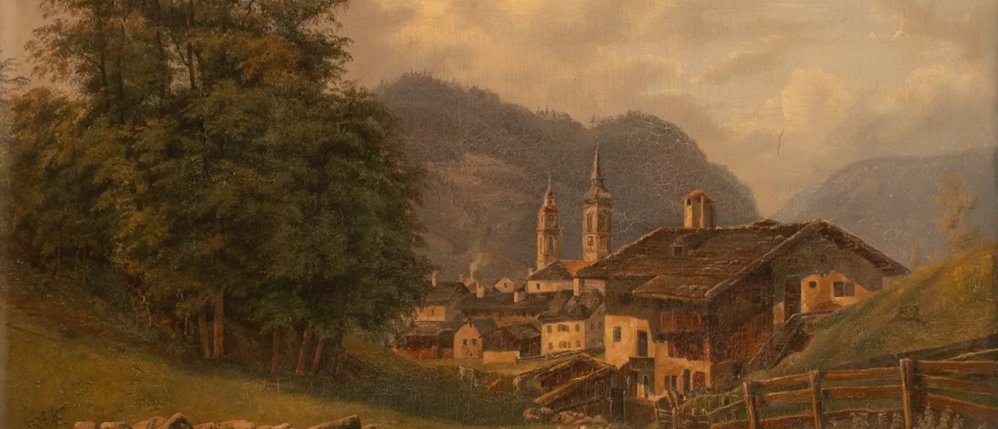 Johann Josef Rauch (1805 Wien - 1868 Rom): Partenkirchen, Öl auf parkettiertem Holz, 40 cm x 52 cm Plattenmaß, signiert, 1837...