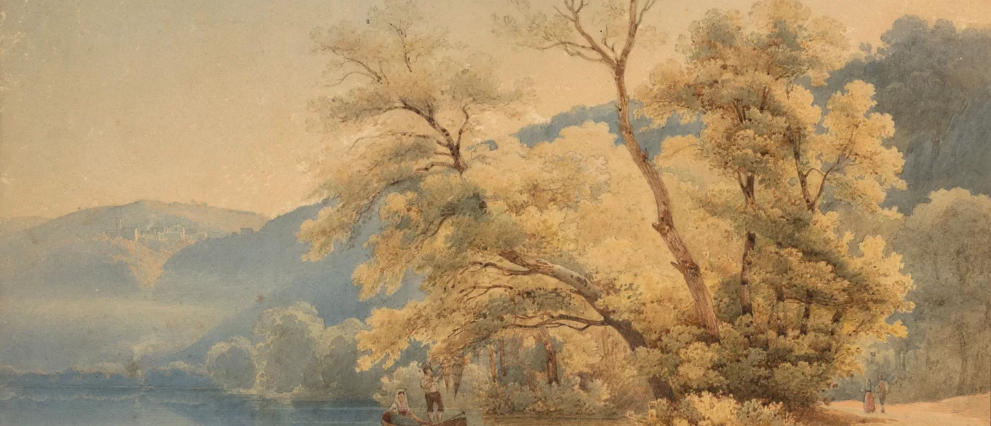 Salomon Corrodi (1810 Fehraltorf - 1892 Como): Italienische Seelandschaft, Bleistift und Aquarell auf Papier, 29,5 cm x 42,5 cm,...
