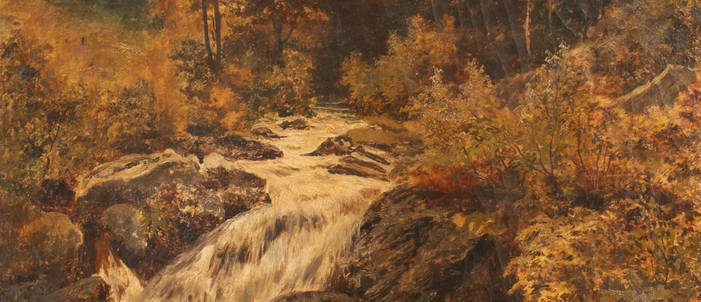 Alfred Feyen Perrin (1838 - 1918, England oder Frankreich): Reißender Fluss, Öl auf Leinwand, 50 cm x 76 cm Leinwandmaß, signiert,...
