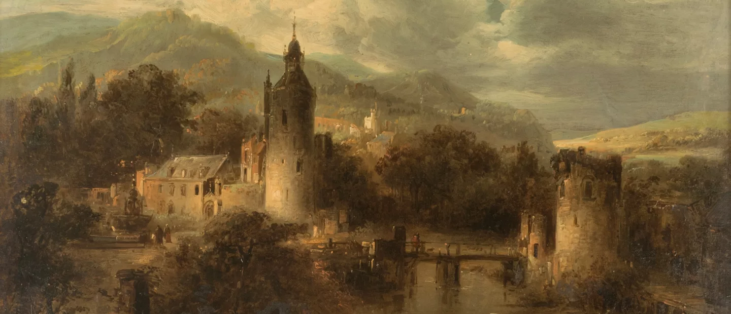 George Gillis van Haanen (1807 Utrecht - 1879 Bilzen): Romantische Flusslandschaft, Öl auf Leinwand, 50 cm x 64 cm Leinwandmaß,...